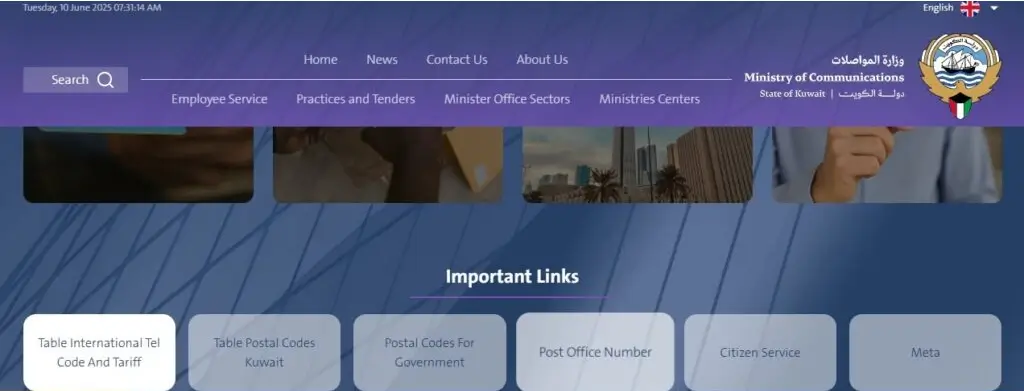 Step 1: Visit the official website of the Ministry of Communications in Kuwait (click here to access the portal).
