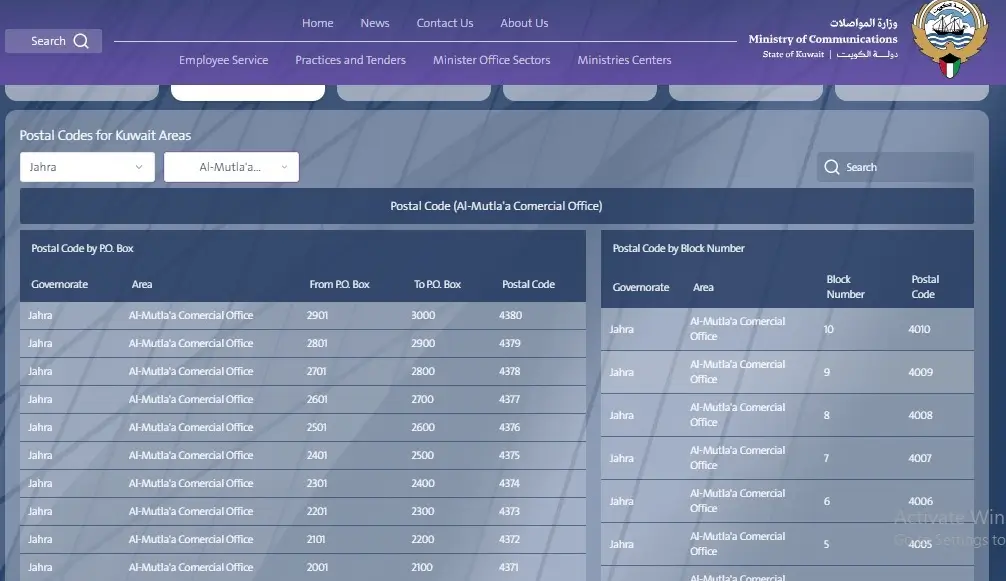 Step 2: Select the option labeled “Kuwait Postal Code Table” to view the complete list of postal codes.